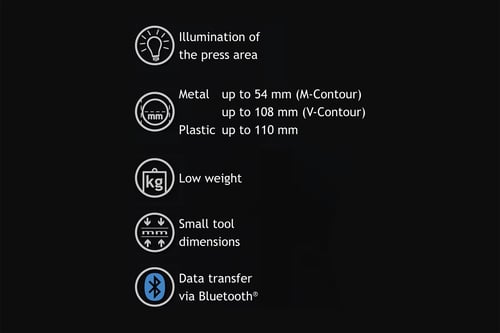 With up to 40% more pressings per battery charge and an unrestricted number of pressing cycles within its 2-year maintenance interval, this tool is built for heavy daily use. Pressing point LED lighting provides excellent visibility in dark or confined spaces, allowing for greater precision during installation.